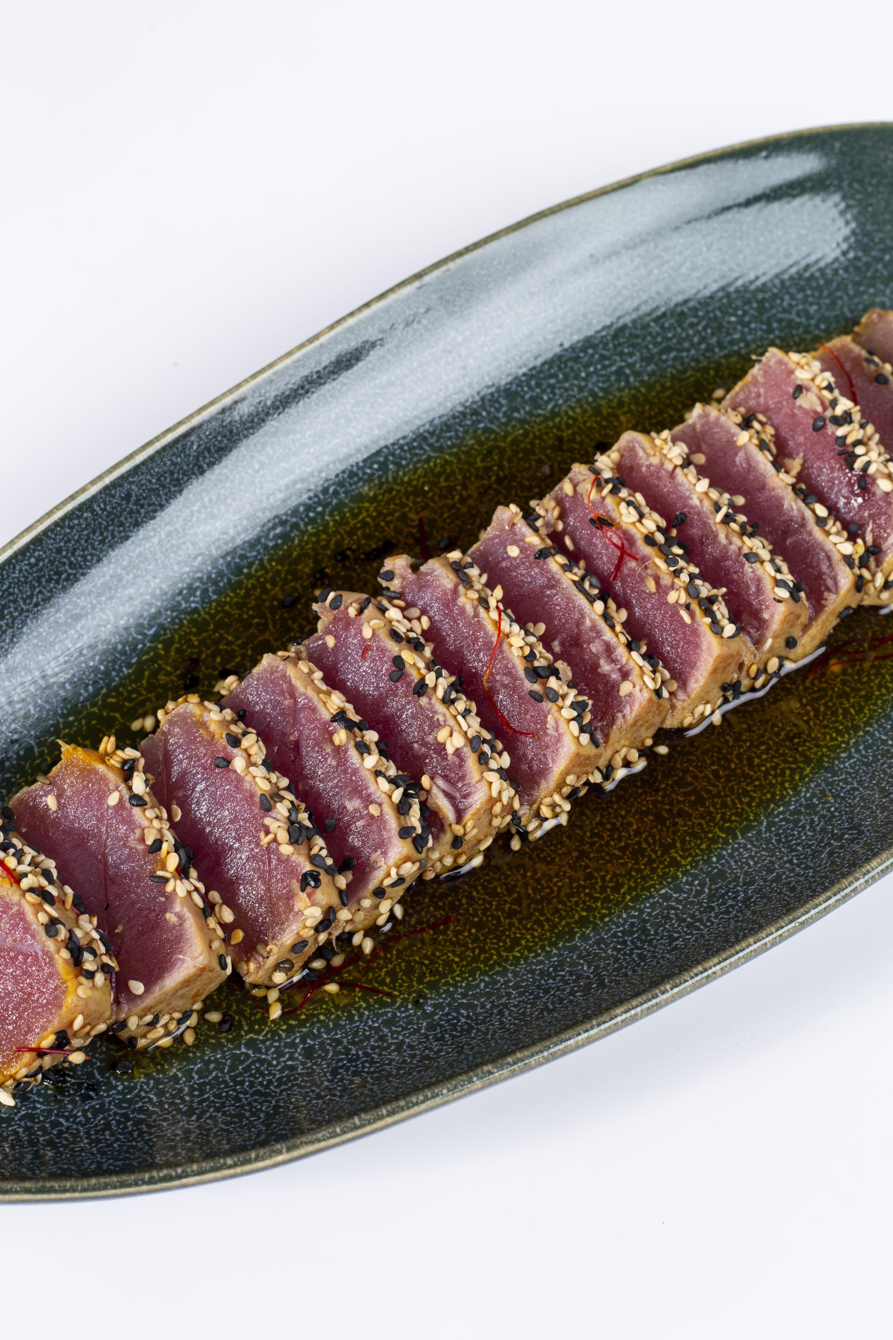 - When it is time to serve, remove the tuna from the marinade and place it on a plate covered with sesame seeds.